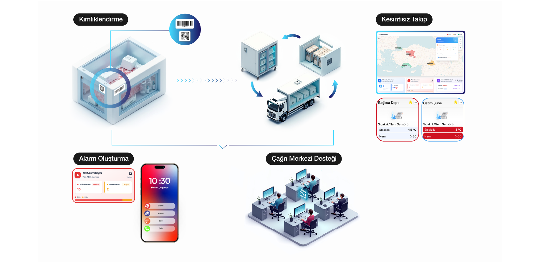 - Sıcaklık ve nem hassasiyeti olan ürünlerin kesintisiz olarak izlenebilmesi