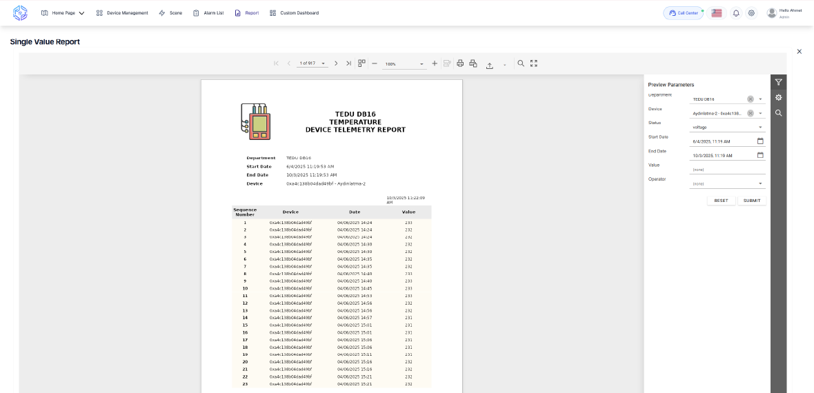 Download reports based on unit, date, and value for your selected sensors in Excel, PDF, Word, and other formats.